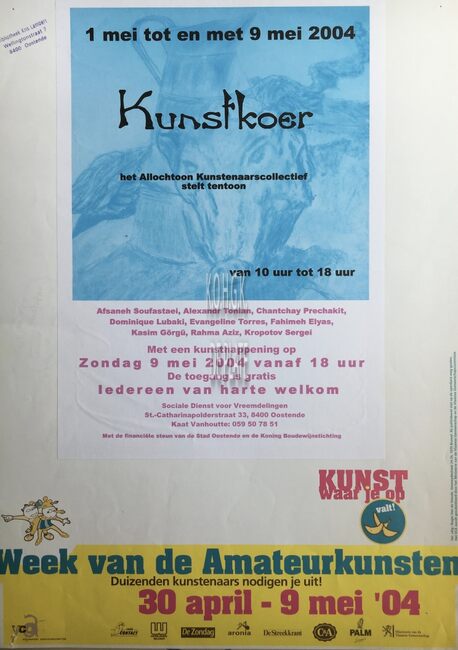 Affiche : Afseneh Soufastaei, Alexandr Tonian, Chantchay Prechakit, ... Kunstkoer. St-Catharinapolderstraat. Van 1 mei tot 9 mei 2004