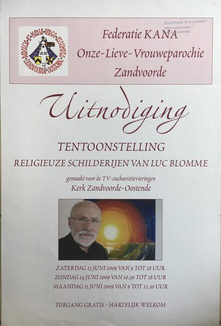Affiche : Luc Blomme. Tentoonstelling religieuse schilderijen. Kerk Zandvoorde. Van 13 tot 15 juni 2009