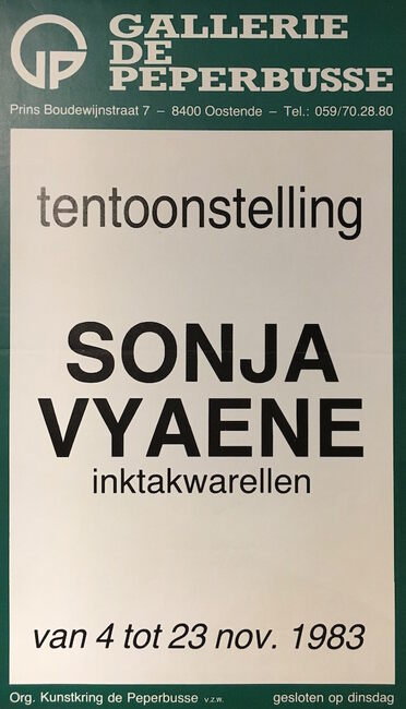 Affiche : Sonja Vyaene. Inktakwarellen. Tentoonstelling. Gallerie De Peperbusse. Van 4 tot 23.11.1983
