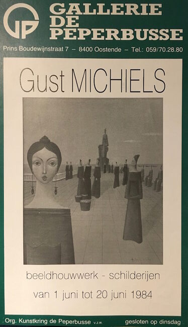 Affiche : Gust Michiels. Beeldhouwwerk, schilderijen. Tentoonstelling. Gallerie De Peperbusse. Van 1 tot 20 juni 1984