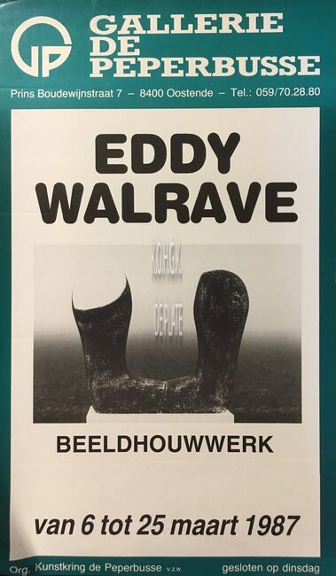 Affiche : Eddy Walrave. Beeldhouwwerk. Tentoonstelling. Gallerie De Peperbusse. Van 6 tot 25 maart 1987