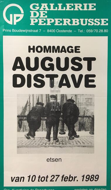 Affiche : August Distave. Etsen. Hommage. Tentoonstelling. Gallerie De Peperbusse. Van 10 tot 27 februari 1989
