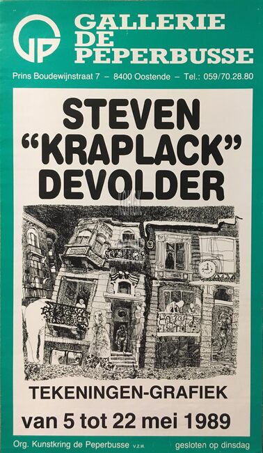 Affiche : Steven "Kraplack" Devolder. Tekeningen, grafiek. Tentoonstelling. Gallerie De Peperbusse. Van 5 tot 22 mei 1989