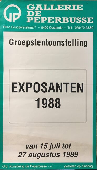 Affiche : Exposanten 1988. Groepstentoonstelling. Gallerie De Peperbusse. Van 15 juli tot 27 augustus 1989