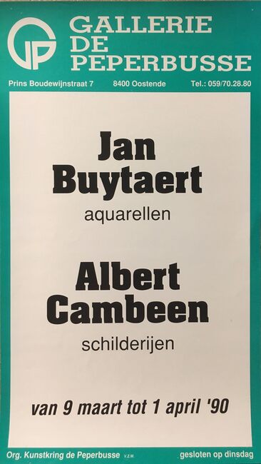 Affiche : Jan Buytaert. Aquarellen. Albert Cambeen. Schilderijen. Tentoonstelling. Gallerie De Peperbusse. Van 9 maart tot 1 april 1990