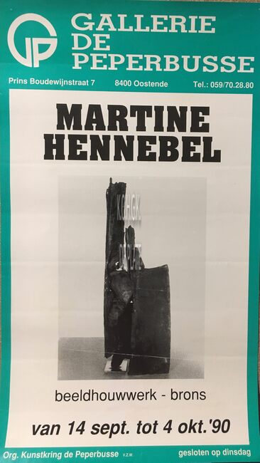 Affiche : Martine Hennebel. Beeldhouwwerk, brons. Tentoonstelling. Gallerie De Peperbusse. Van 14 september tot 4 oktober 1990