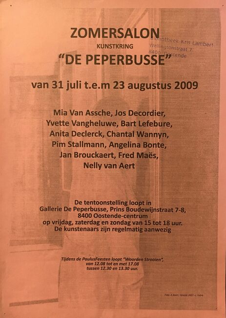 Formaat : 43 x 25 cm. Gallerie "De Peperbusse". Prins Boudewijnstraat 7, 8400 Oostende. Organisatie "Kunstkring de Peperbusse"