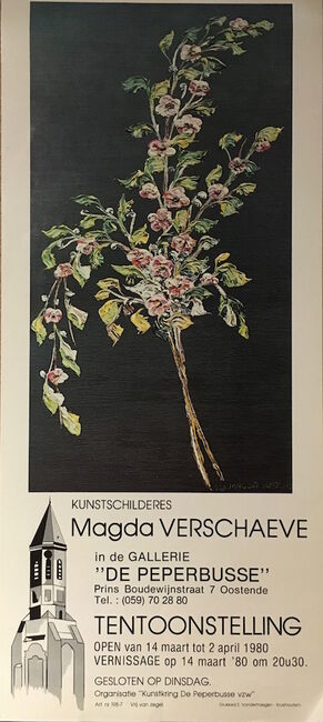 Affiche : Magda Verschaeve. Tentoonstelling. Gallerie "De Peperbusse". Open van 14 maart tot 2 april 1980