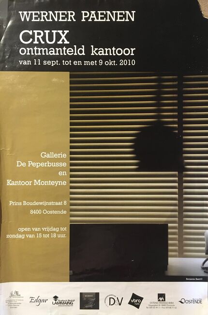 Affiche : Werner Paenen. Crux. Ontmanteld kantoor. Gallerie De Peperbusse en Kantoor Monteyne. 11 september - 9 oktober 2010