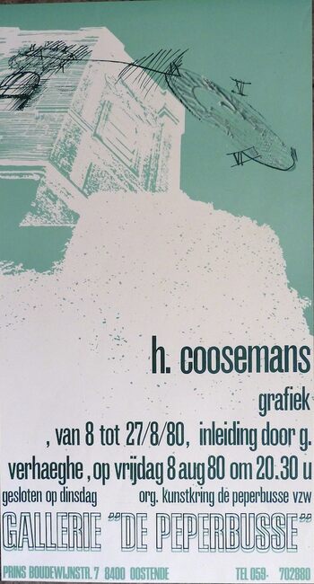 Affiche : H. Coosemans. Gallerie "De Peperbusse". Van 8 tot 27/8/1980.