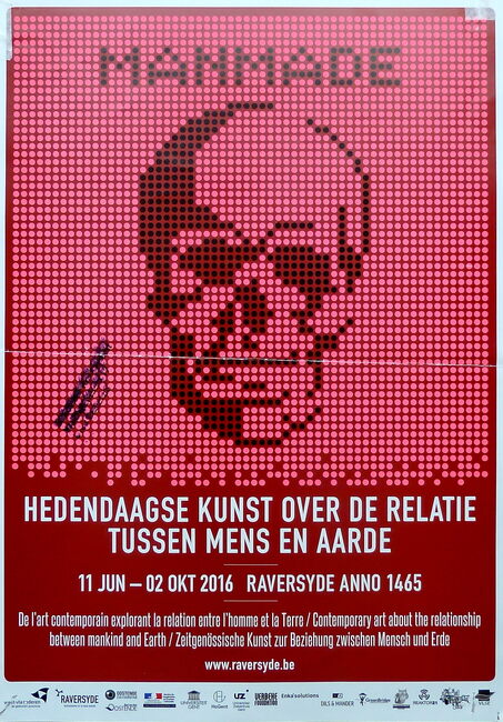 Affiche : Manmade : hedendaagse kunst over de relatie tussen mens en aarde. Domein Raversijde. 11/06-02/10/2016
