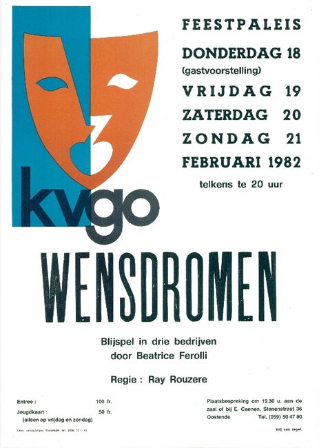 Formaat : 42 x 30 cm. Blijspel in drie bedrijven door Beatrice Ferolli. Regie: Ray Rouzere