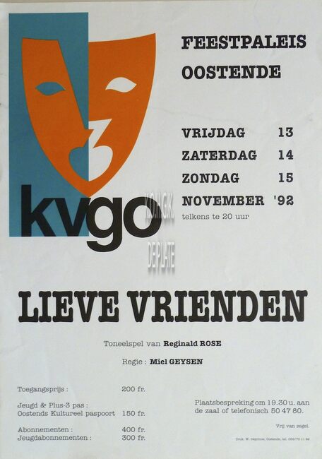 Formaat : 42 x 30 cm. Toneelspel van Reginald Rose, regie : Miel Geysen.