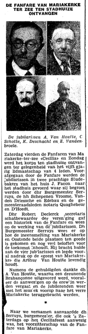 De fanfare van Mariakerke ter Zee ten stadhuize ontvangen