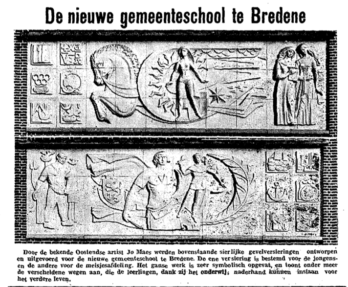 Trefwoorden MAES JO (KUNSTENAAR) EUROPASCHOOL (BREDENE) BEELDHOUWWERKEN ; BREDENE Plaatskenmerk O.D.P.-archieven. Bibliotheek Kris Lambert KBLA1958 29-01-1958 Bron Het Kustblad Pagina's 12,foto Print