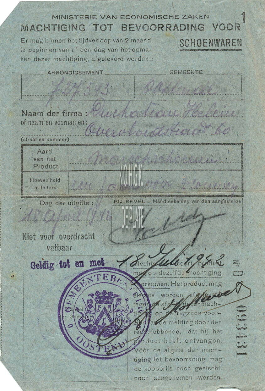 Document : Machtiging tot bevoorrading voor schoenwaren