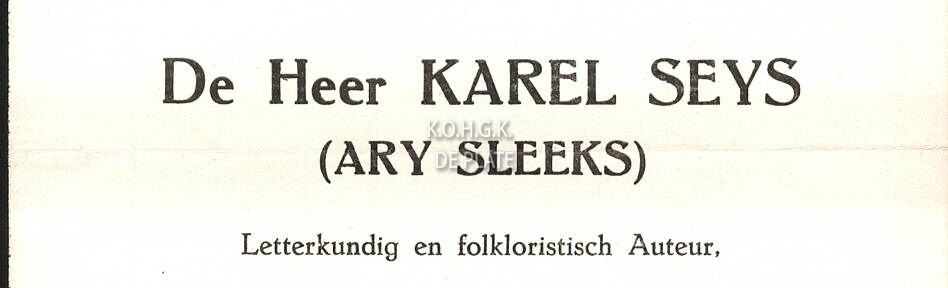 Trefwoorden ROUWBRIEVEN SLEEKS ARY (KAREL SEYS) (1888-1966) OVERLIJDENS HEEMKUNDIGE KRING DE PLATE ; ALGEMEEN Plaatskenmerk ARCHIEF 110 ARCHIEFDOOS DE PLATE Inventarisnummers 1992/0167 13/ 10/ 1888 25/ 01/ 1966 Collectie Archief De Plate Vervaardiger Drukkerij Smissaert Uitgever Heemkundige Kring De Plate Print
