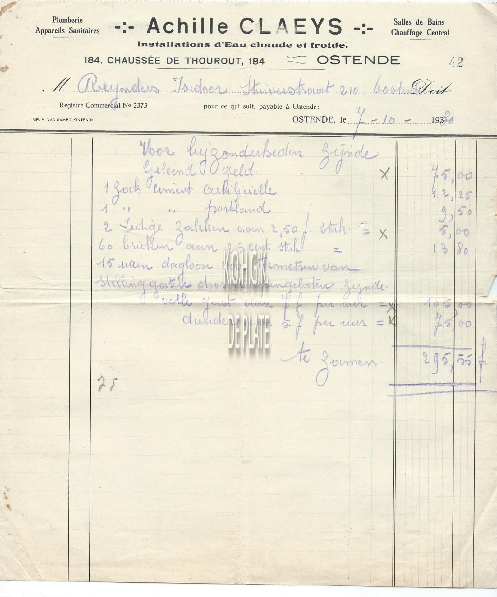 Trefwoorden HANDEL ; FACTUREN ACHILLE CLAEYS (VERWARMING SANITAIR) SANITAIR VERWARMING TORHOUTSESTEENWEG Plaatskenmerk ARCHIEF 110 ARCHIEFDOOS HANDEL Inventarisnummers 2022/0279 07/ 10/ 1936 Herkomst AANKOOP Vervaardiger Imp. H. van Campo Print