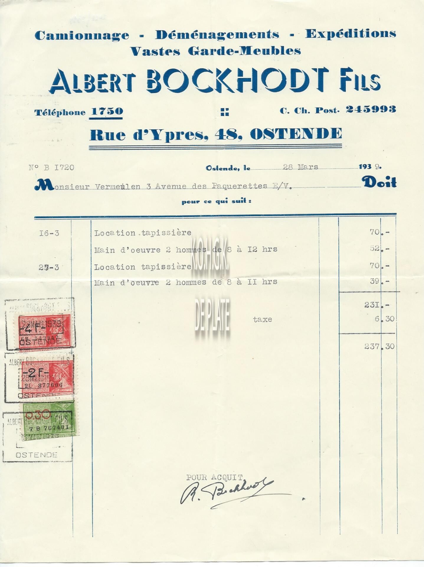 Trefwoorden HANDEL ; FACTUREN ALBERT BOCKHODT FILS (VERHUIZINGEN VERVOER) IEPERSTRAAT VERVOER ; TRANSPORTBEDRIJVEN Plaatskenmerk ARCHIEF 110 ARCHIEFDOOS HANDEL Inventarisnummers 2022/2394 28/ 03/ 1939 Print