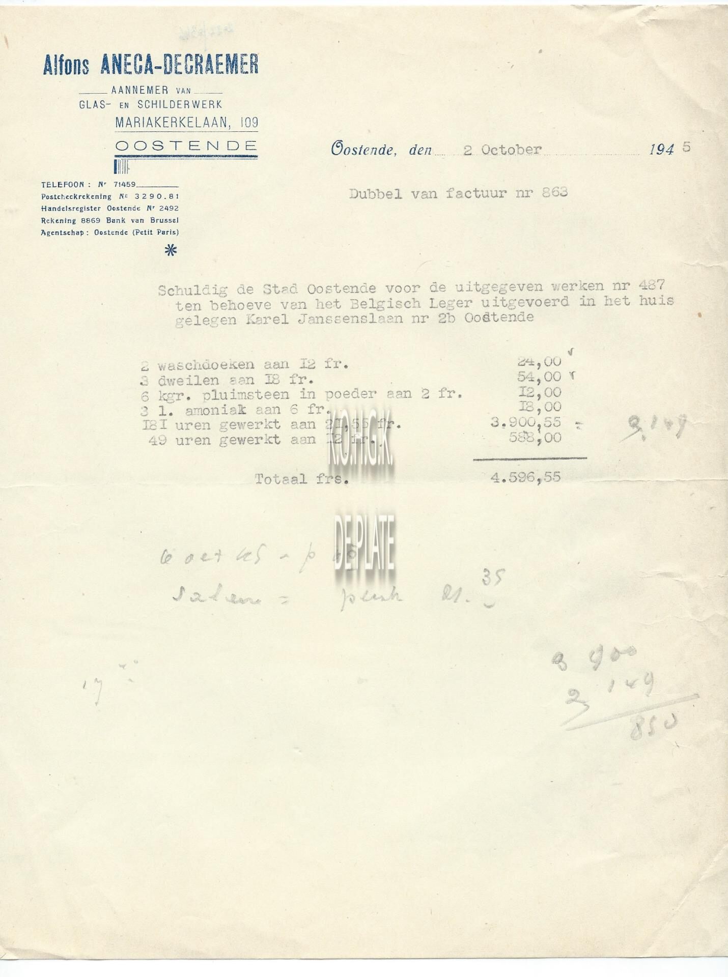 Trefwoorden HANDEL ; FACTUREN ALFONS ANECA-DECRAEMER (SCHILDERWERKEN GLASWERK) MARIAKERKELAAN Plaatskenmerk ARCHIEF 110 ARCHIEFDOOS HANDEL Inventarisnummers 2022/0346 02/ 10/ 1945 Herkomst AANKOOP Print