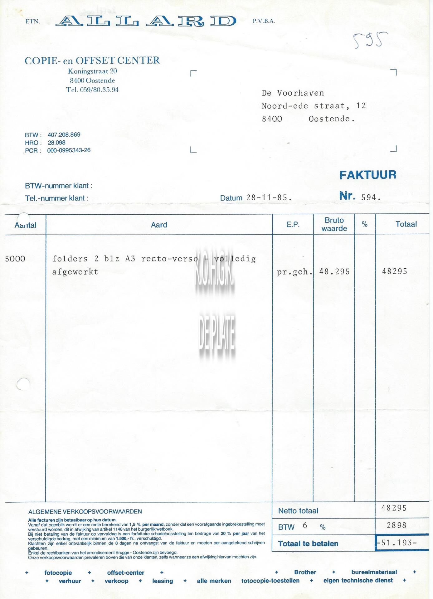 Trefwoorden HANDEL ; FACTUREN ALLARD (COPIE- EN OFFSETCENTER) KONINGSSTRAAT Plaatskenmerk ARCHIEF 110 ARCHIEFDOOS HANDEL Inventarisnummers 2017/0080 28/ 11/ 1985 Print