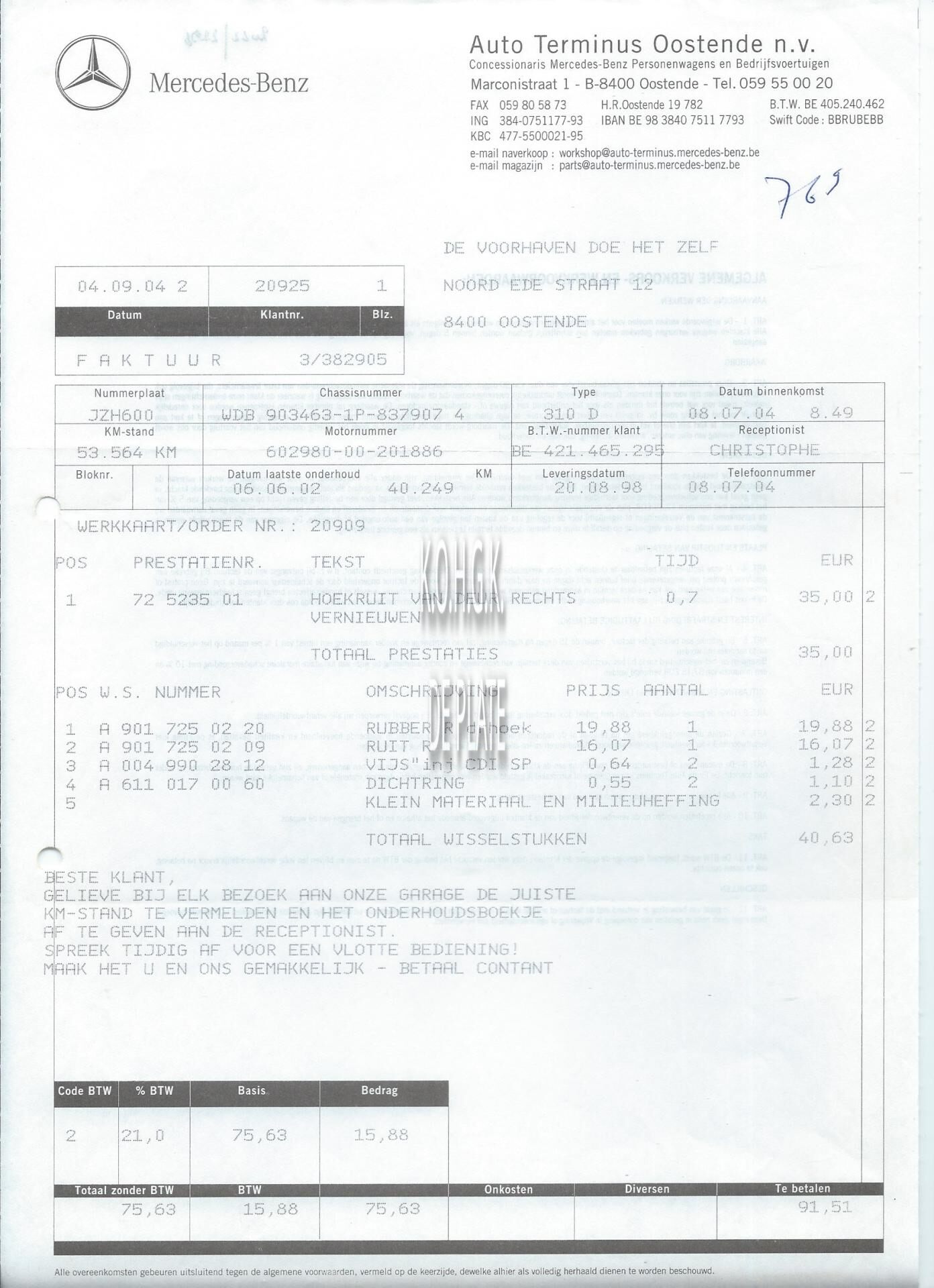 Omschrijving Concessionaris Mercedes-Benz personenwagens en bedrijfsvoertuigen Trefwoorden HANDEL ; FACTUREN AUTO TERMINUS OOSTENDE (GARAGE) VERVOER ; GARAGES MARCONISTRAAT Plaatskenmerk ARCHIEF 110 ARCHIEFDOOS HANDEL Inventarisnummers 2022/2296 04/ 09/ 2004 Herkomst COULIER L. Print