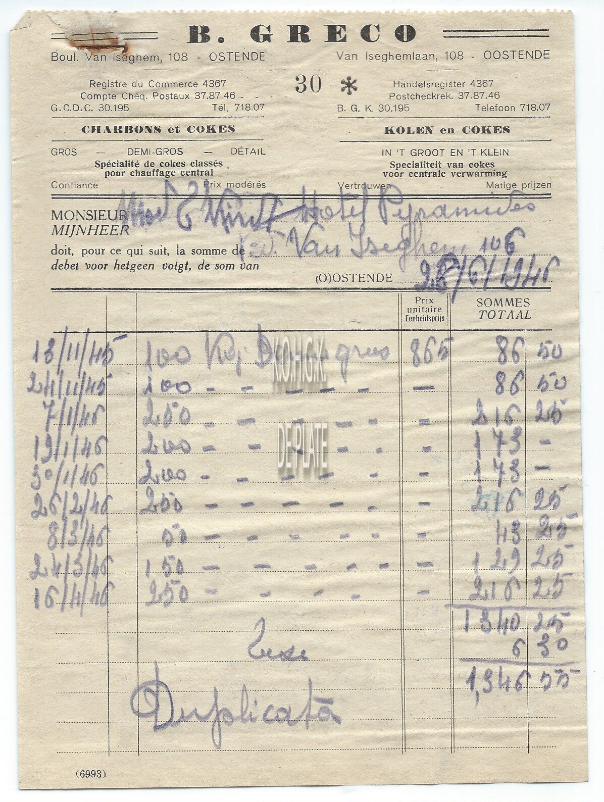 Trefwoorden HANDEL ; FACTUREN B. GRECO (KOLENHANDEL) HANDEL ; KOLEN EN ANDERE BRANDSTOFFEN VAN ISEGHEMLAAN Plaatskenmerk ARCHIEF 110 ARCHIEFDOOS HANDEL Inventarisnummers 2022/0152 23/ 06/ 1946 Herkomst AANKOOP Print