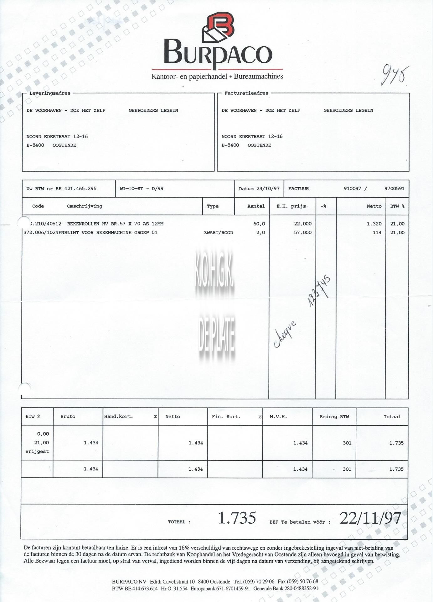 Trefwoorden HANDEL ; FACTUREN BURPACO (KANTOORBENODIGDHEDEN) EDITH CAVELLSTRAAT Plaatskenmerk ARCHIEF 110 ARCHIEFDOOS HANDEL Inventarisnummers 2022/2311 23/ 10/ 1997 Herkomst COULIER L. Print