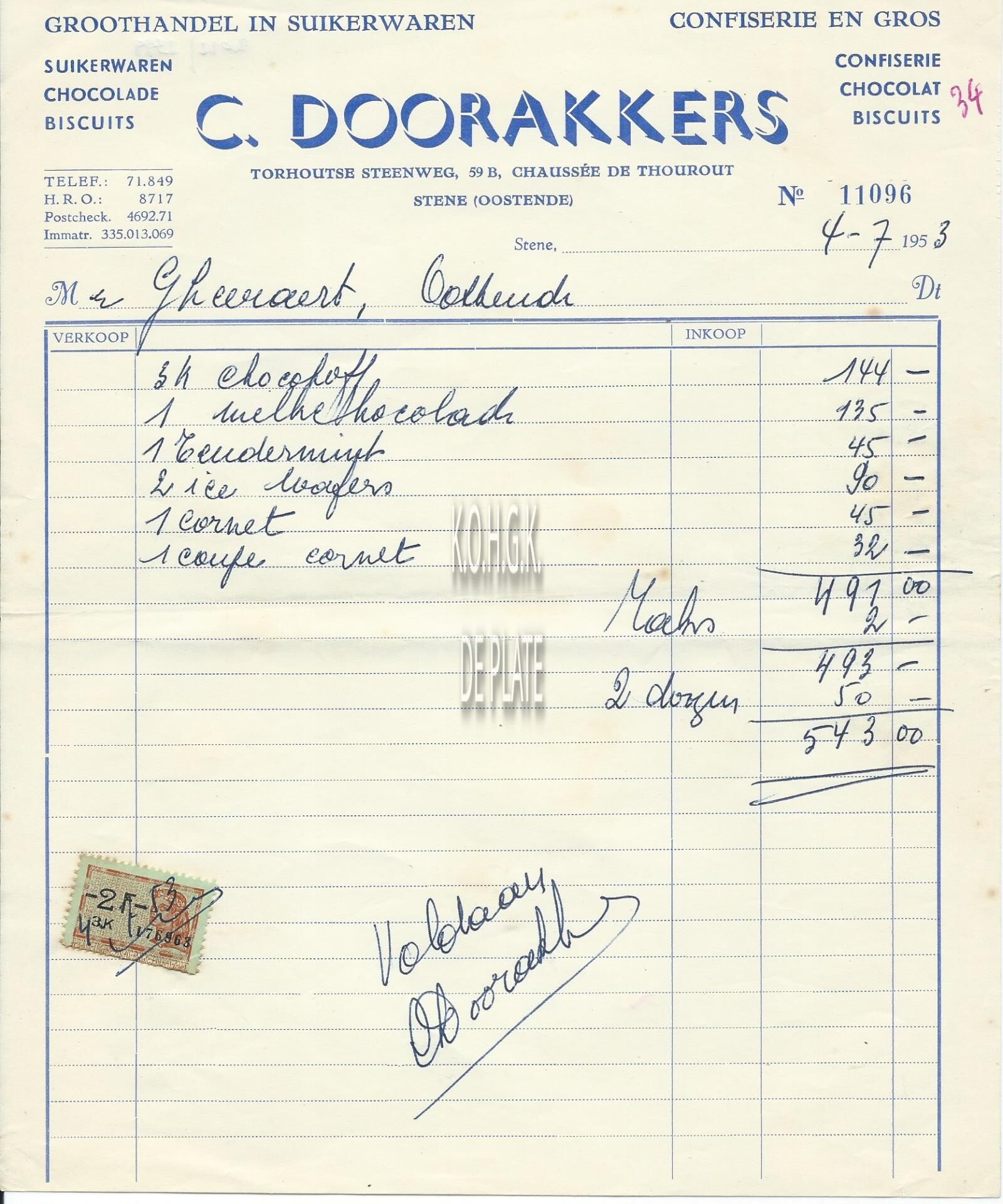 Omschrijving Suikerwaren - Chocolade - Biscuits Trefwoorden HANDEL ; FACTUREN DOORAKKERS C. (GROOTHANDEL IN SUIKERWAREN) TORHOUTSESTEENWEG Plaatskenmerk ARCHIEF 110 ARCHIEFDOOS HANDEL Inventarisnummers 2022/2388 04/ 07/ 1953 Print