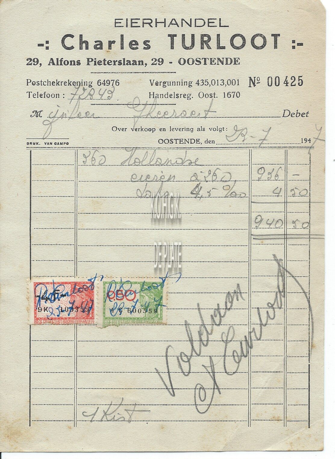 Trefwoorden HANDEL ; FACTUREN TURLOOT CHARLES (ZUIVELHANDEL) HANDEL ; ZUIVELHANDEL ALFONS PIETERSLAAN Plaatskenmerk ARCHIEF 110 ARCHIEFDOOS HANDEL Inventarisnummers 2022/2390 29/ 07/ 1947 Vervaardiger Drukkerij Van Campo Print