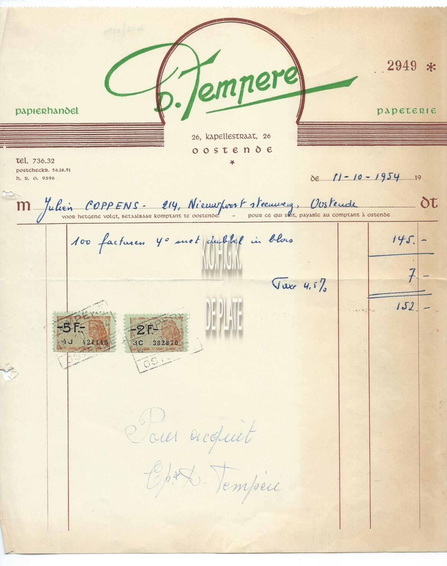 Trefwoorden HANDEL ; FACTUREN D. TEMPERE (PAPIERHANDEL) KAPELLESTRAAT Plaatskenmerk ARCHIEF 110 ARCHIEFDOOS HANDEL Inventarisnummers 2022/0294 11/ 10/ 1954 Herkomst AANKOOP Print