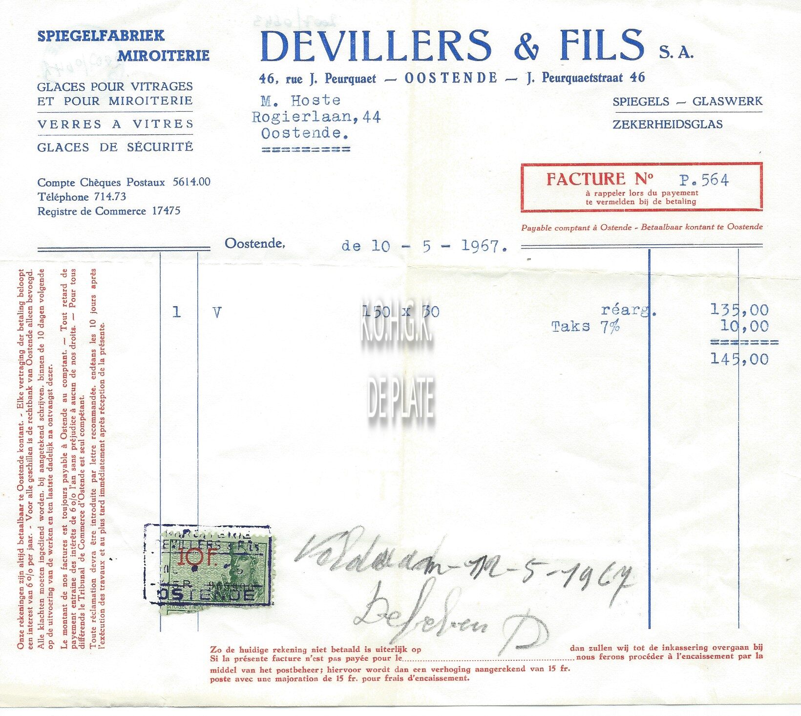 Trefwoorden HANDEL ; FACTUREN DEVILLERS ET FILS (GLASHANDEL) JULES PEURQUAETSTRAAT Plaatskenmerk ARCHIEF 110 ARCHIEFDOOS HANDEL Inventarisnummers 2007/0643 10/ 05/ 1967 Print