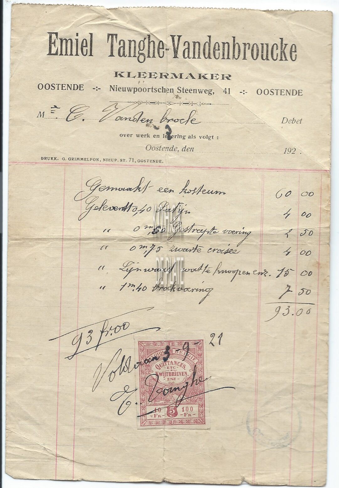 Trefwoorden HANDEL ; FACTUREN EMIEL TANGHE-VANDENBROUCKE (KLEERMAKER) HANDEL ; KLEDING NIEUWPOORTSESTEENWEG Plaatskenmerk ARCHIEF 110 ARCHIEFDOOS HANDEL Inventarisnummers 2022/2363 03/ 09/ 1921 Vervaardiger Drukk. G. Grimmelpon Print