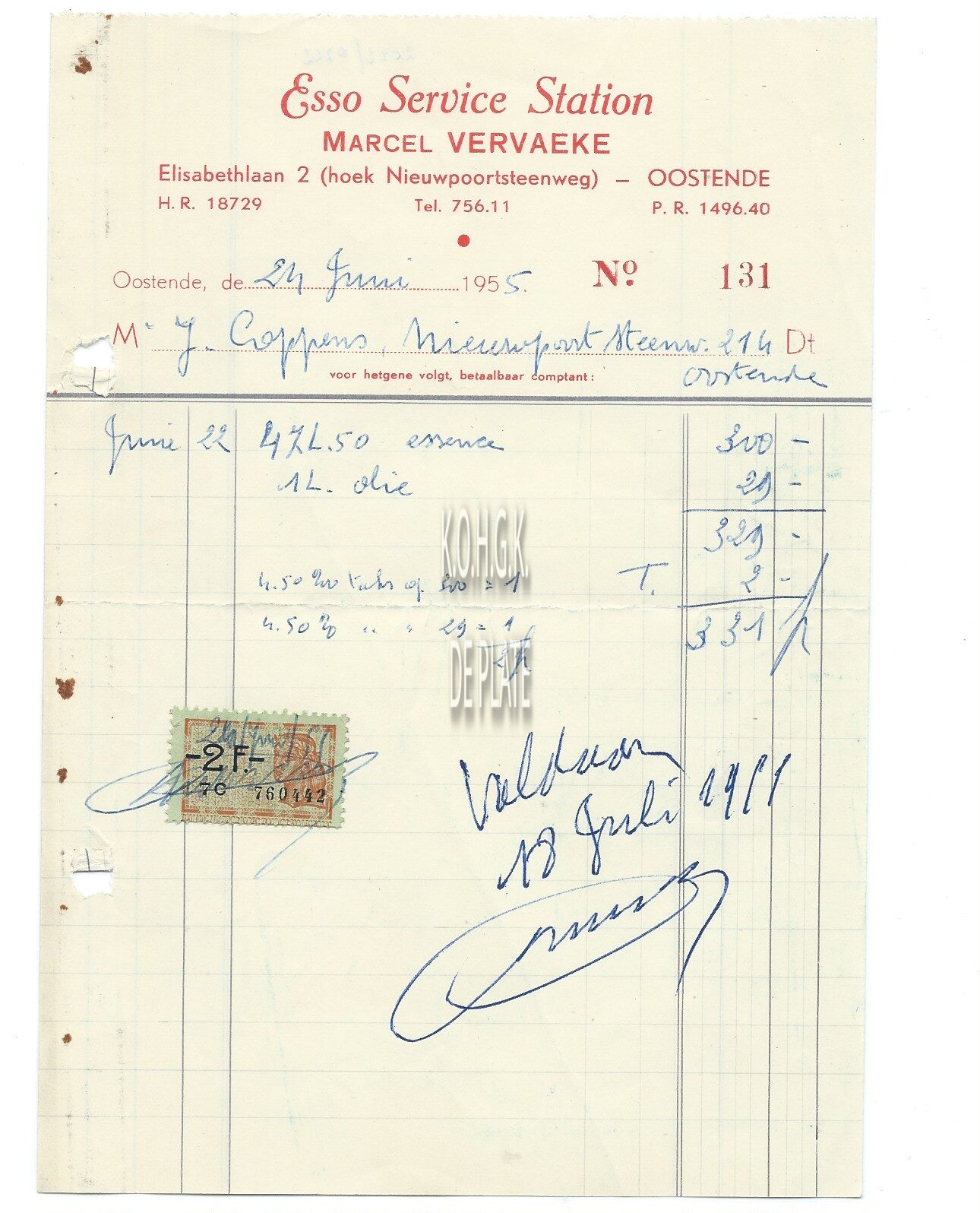 Trefwoorden HANDEL ; FACTUREN ESSO SERVICE STATION (MARCEL VERVAEKE) (BENZINESTATION) BENZINESTATIONS ELISABETHLAAN Plaatskenmerk ARCHIEF 110 ARCHIEFDOOS HANDEL Inventarisnummers 2022/0222 24/ 06/ 1955 Herkomst AANKOOP Print
