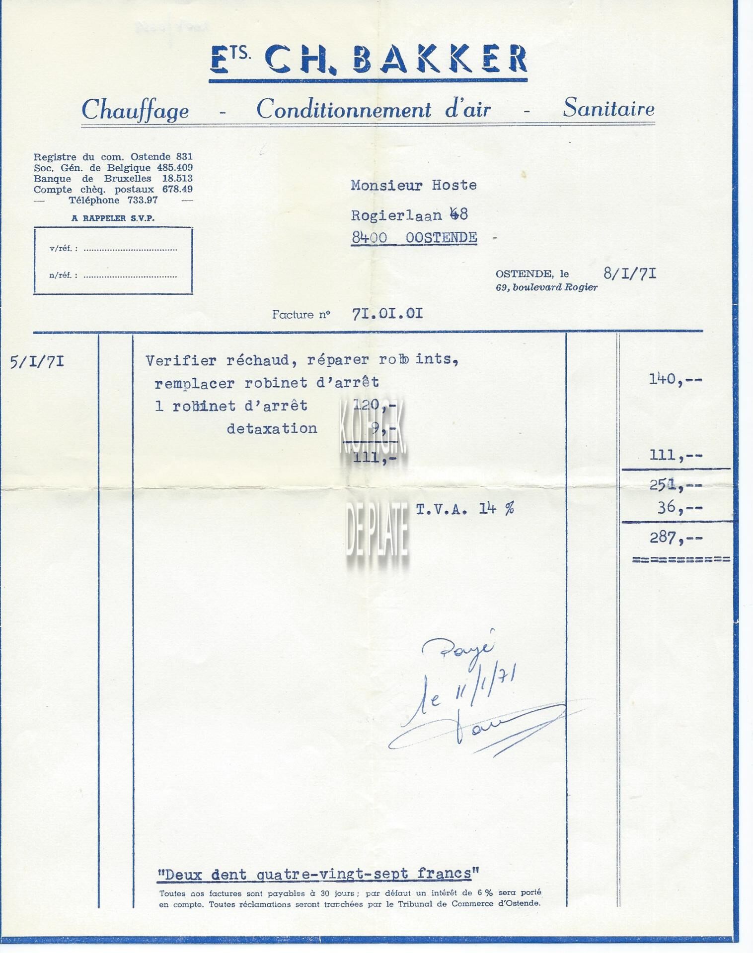 Trefwoorden HANDEL ; FACTUREN CH. BAKKER (VERWARMING SANITAIR) SANITAIR ROGIERLAAN Plaatskenmerk ARCHIEF 110 ARCHIEFDOOS HANDEL Inventarisnummers 2007/0658 08/ 01/ 1971 Print