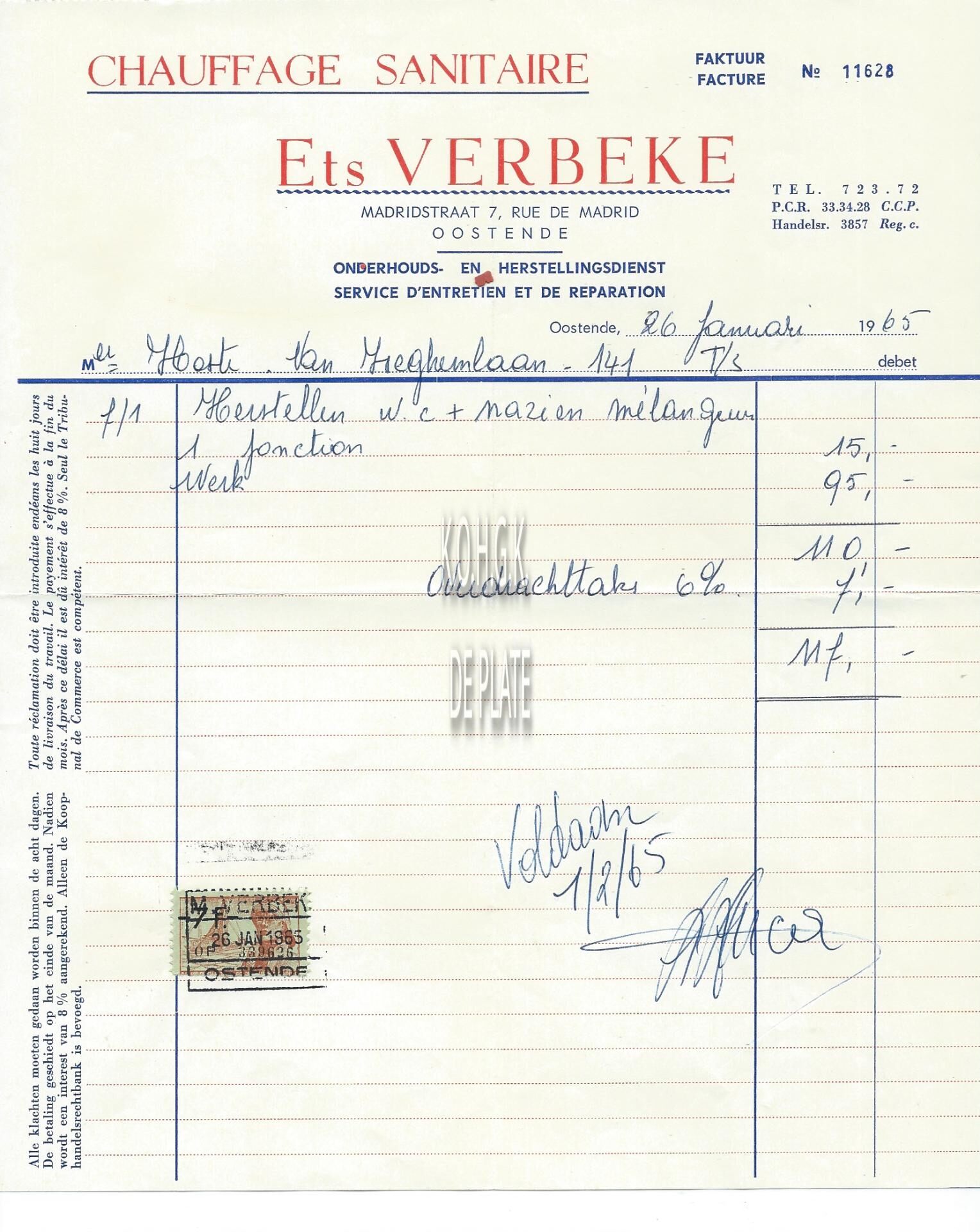 Trefwoorden HANDEL ; FACTUREN SANITAIR MADRIDSTRAAT VERBEKE (VERWARMING SANITAIR) Plaatskenmerk ARCHIEF 110 ARCHIEFDOOS HANDEL Inventarisnummers 2022/2393 26/ 01/ 1965 Print
