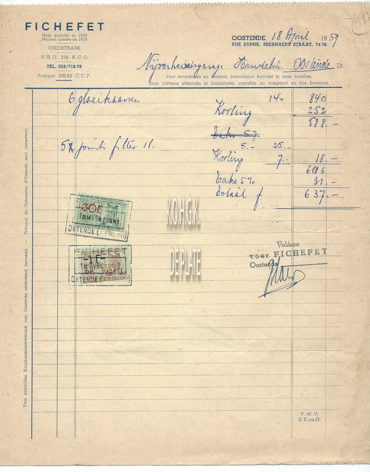 Trefwoorden HANDEL ; FACTUREN FICHEFET (ELEKTROMECHANIEK) HANDEL ; AUTO ONDERDELEN EUPHROSINA BEERNAERTSTRAAT Plaatskenmerk ARCHIEF 110 ARCHIEFDOOS HANDEL Inventarisnummers 2022/2251 18/ 04/ 1959 Herkomst AANKOOP Print