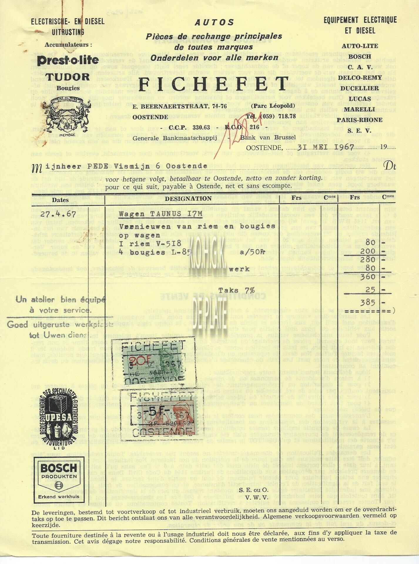 Trefwoorden HANDEL ; FACTUREN FICHEFET (ELEKTROMECHANIEK) HANDEL ; AUTO ONDERDELEN EUPHROSINA BEERNAERTSTRAAT Plaatskenmerk ARCHIEF 110 ARCHIEFDOOS HANDEL Inventarisnummers 2022/0203 31/ 05/ 1967 Herkomst AANKOOP Print