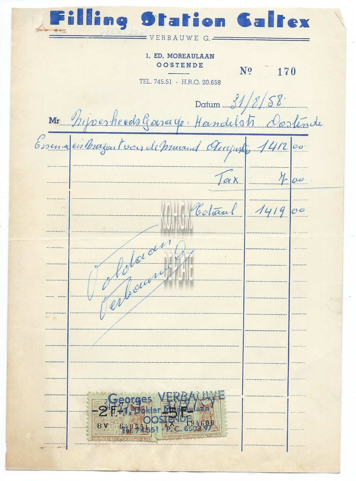 Trefwoorden HANDEL ; FACTUREN FILLING STATION CALTEX (VERBAUWE G.) (BENZINESTATION) BENZINESTATIONS DOKTER EDUARD MOREAUXLAAN Plaatskenmerk ARCHIEF 110 ARCHIEFDOOS HANDEL Inventarisnummers 2022/0232 31/ 08/ 1958 Herkomst AANKOOP Print