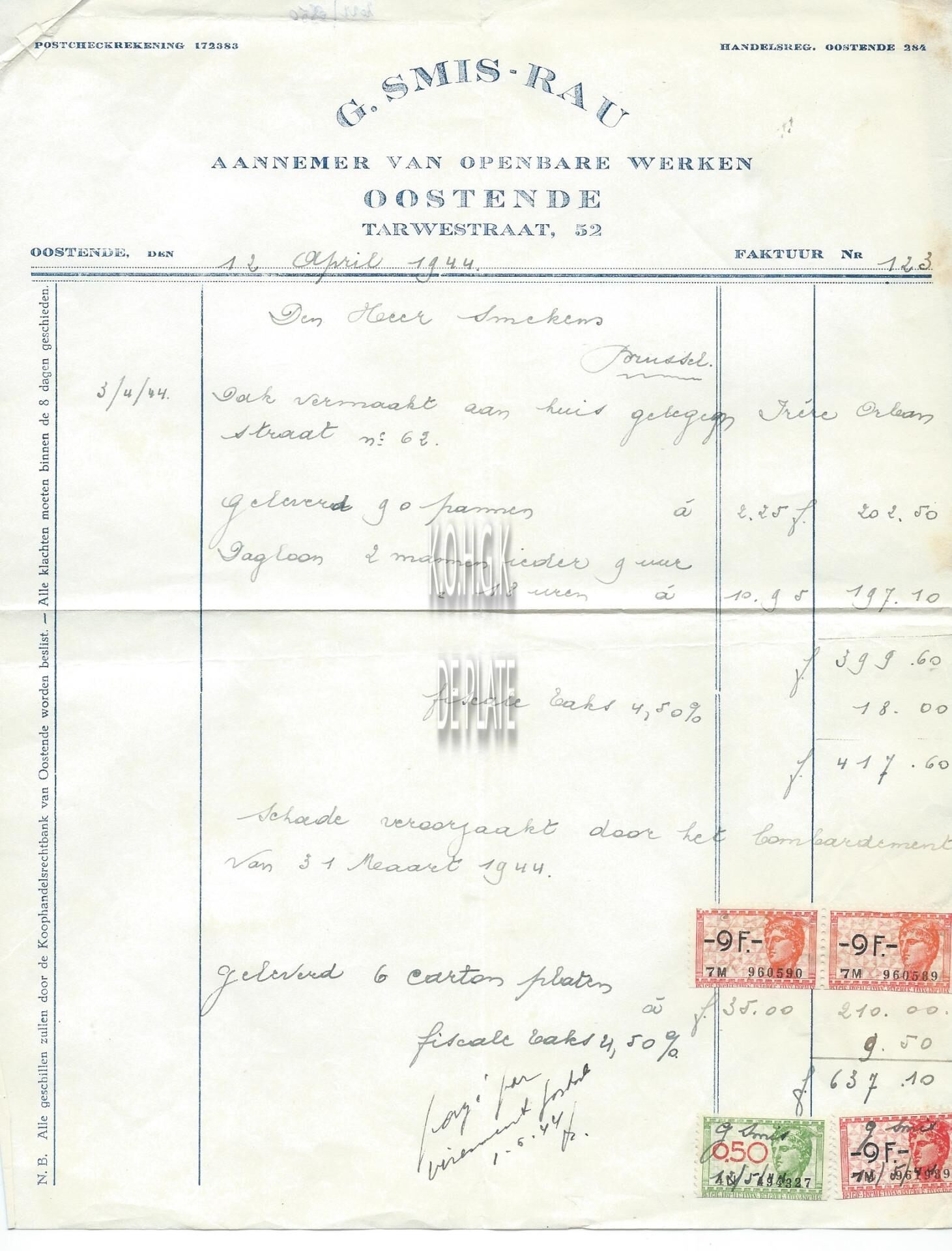 Trefwoorden HANDEL ; FACTUREN G. SMIS-RAU (AANNEMERSBEDRIJF) TARWESTRAAT NIJVERHEID ; AANNEMERS Plaatskenmerk ARCHIEF 110 ARCHIEFDOOS HANDEL Inventarisnummers 2022/0350 12/ 04/ 1944 Herkomst AANKOOP Print
