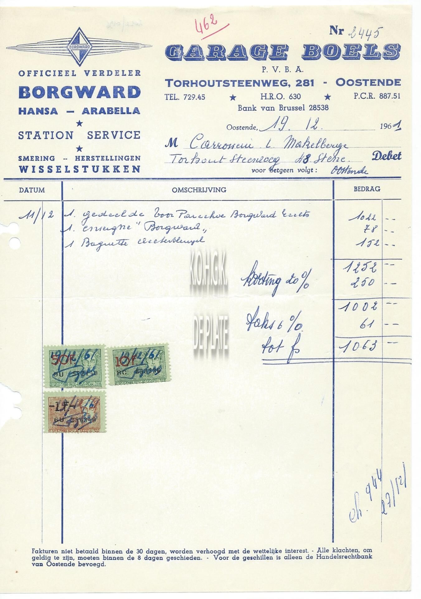 Officieel verdeler Borgward - Hansa -Arabella. Station Service. Smering - Herstellingen. Wisselstukken