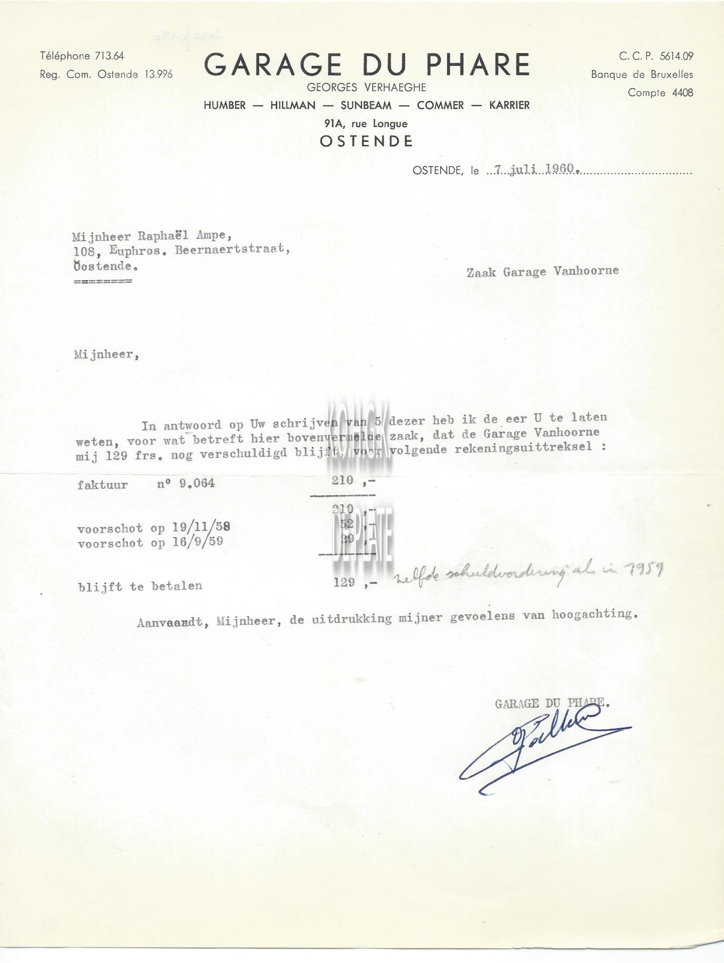 Omschrijving Georges Verhaeghe. - Humber - Hillman - Sunbeam - Commer - Karrier Trefwoorden HANDEL ; FACTUREN GARAGE DU PHARE VERHAEGHE GEORGES (GARAGIST) VERVOER ; GARAGES LANGESTRAAT Plaatskenmerk ARCHIEF 110 ARCHIEFDOOS HANDEL Inventarisnummers 2022/0187 07/ 07/ 1960 Herkomst AANKOOP Print