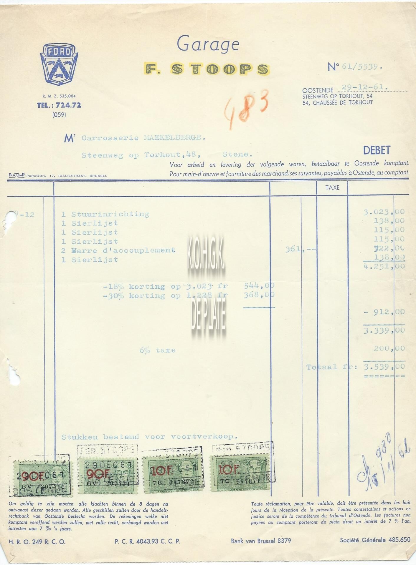 Factuur : Garage F. Stoops. Torhoutsesteenweg 54, Oostende