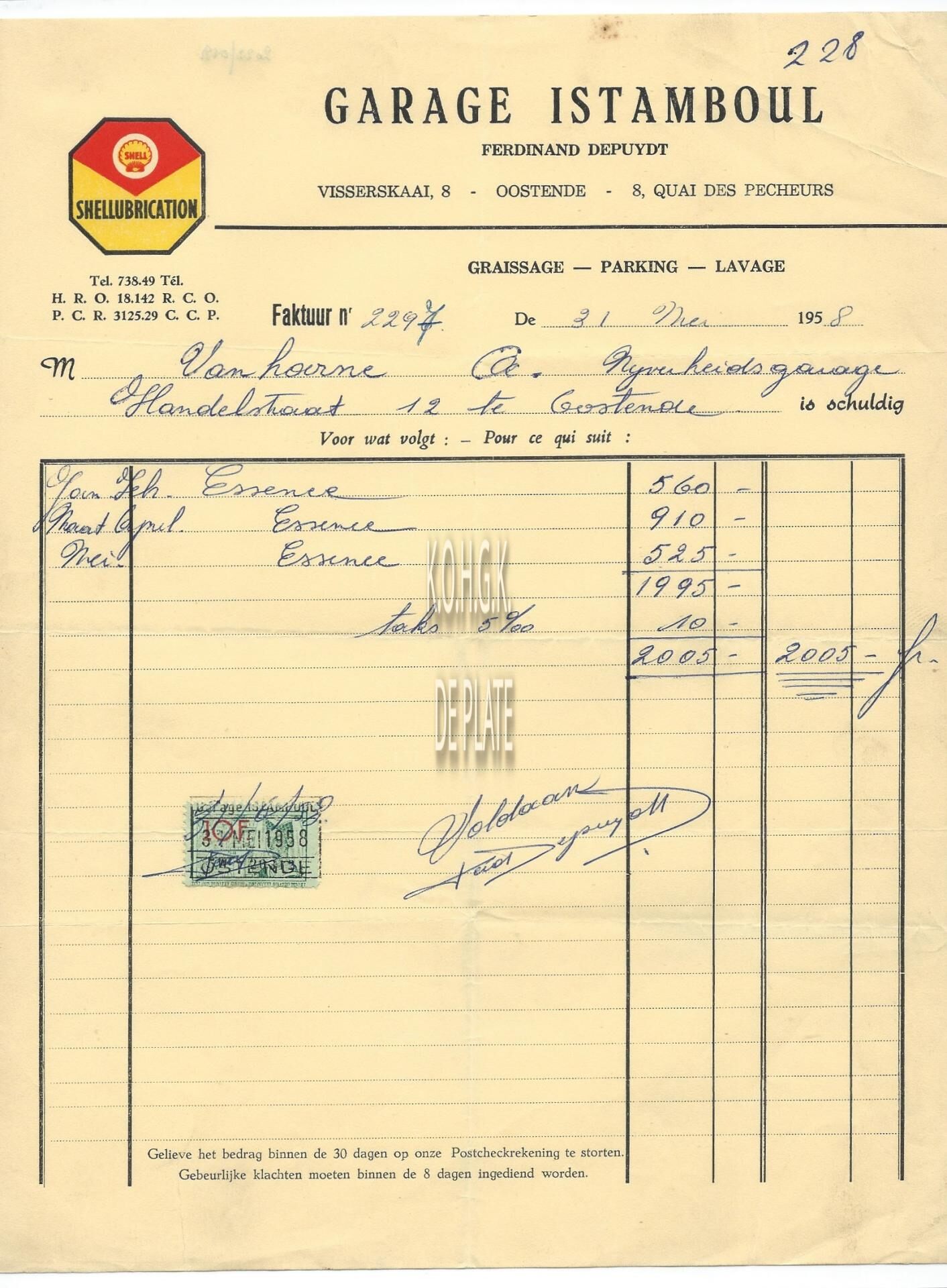 Omschrijving Ferdinand Depuydt Trefwoorden HANDEL ; FACTUREN GARAGE ISTAMBOUL DEPUYDT FERDINAND (GARAGIST) VISSERSKAAI Plaatskenmerk ARCHIEF 110 ARCHIEFDOOS HANDEL Inventarisnummers 2022/0181 31/ 05/ 1958 Herkomst AANKOOP Print