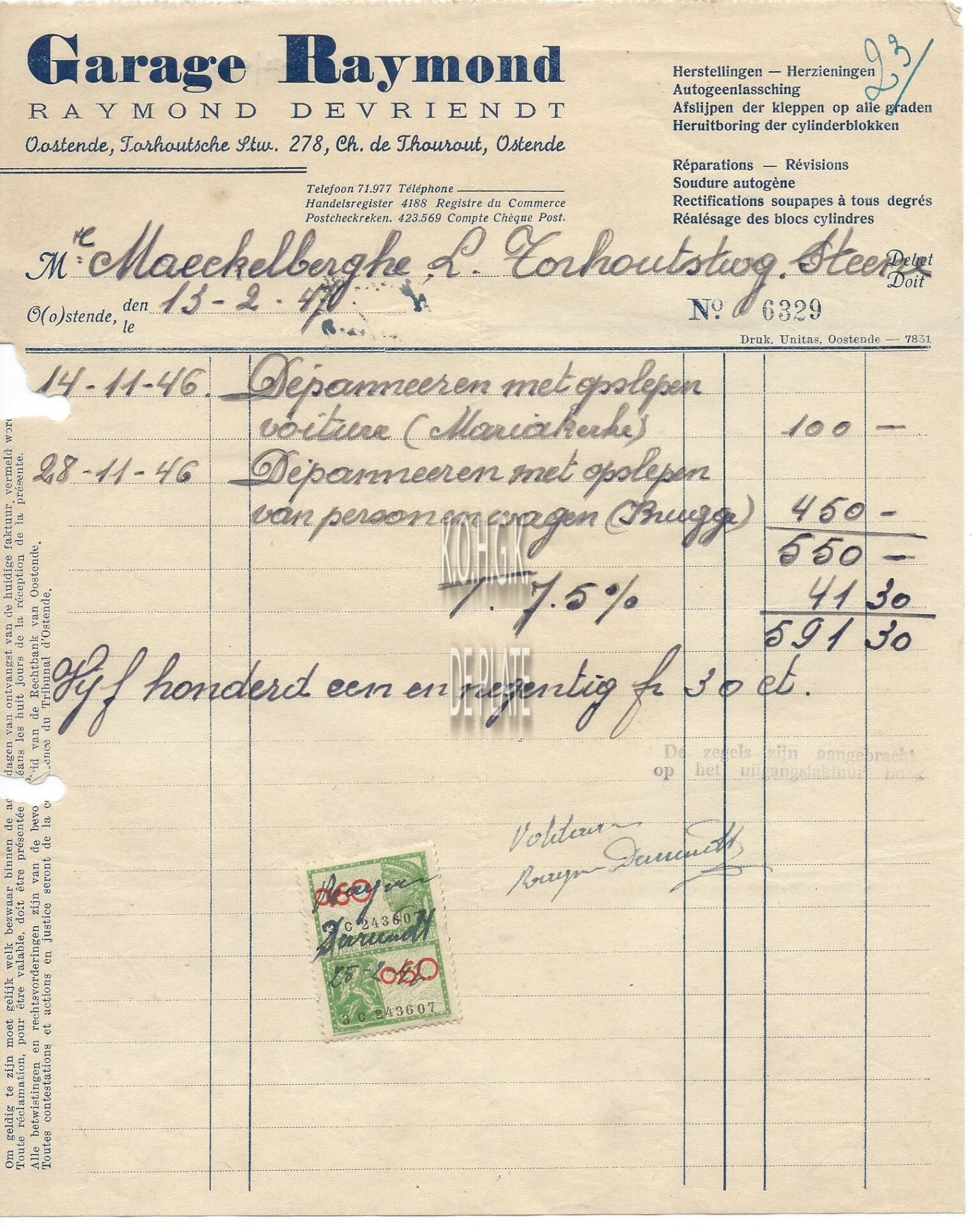 Trefwoorden HANDEL ; FACTUREN GARAGE RAYMOND DEVRIENDT RAYMOND (GARAGIST) TORHOUTSESTEENWEG Plaatskenmerk ARCHIEF 110 ARCHIEFDOOS HANDEL Inventarisnummers 2022/0245 13/ 02/ 1947 Herkomst AANKOOP Print