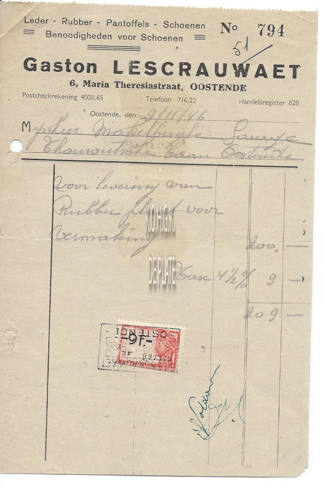 Omschrijving Schoenen - Benodigdheden voor schoenen Trefwoorden HANDEL ; FACTUREN LESCRAUWAET GASTON (LEDERWAREN SCHOENEN) MARIA THERESIASTRAAT Plaatskenmerk ARCHIEF 110 ARCHIEFDOOS HANDEL Inventarisnummers 2022/0458 09/ 11/ 1946 Herkomst AANKOOP Print