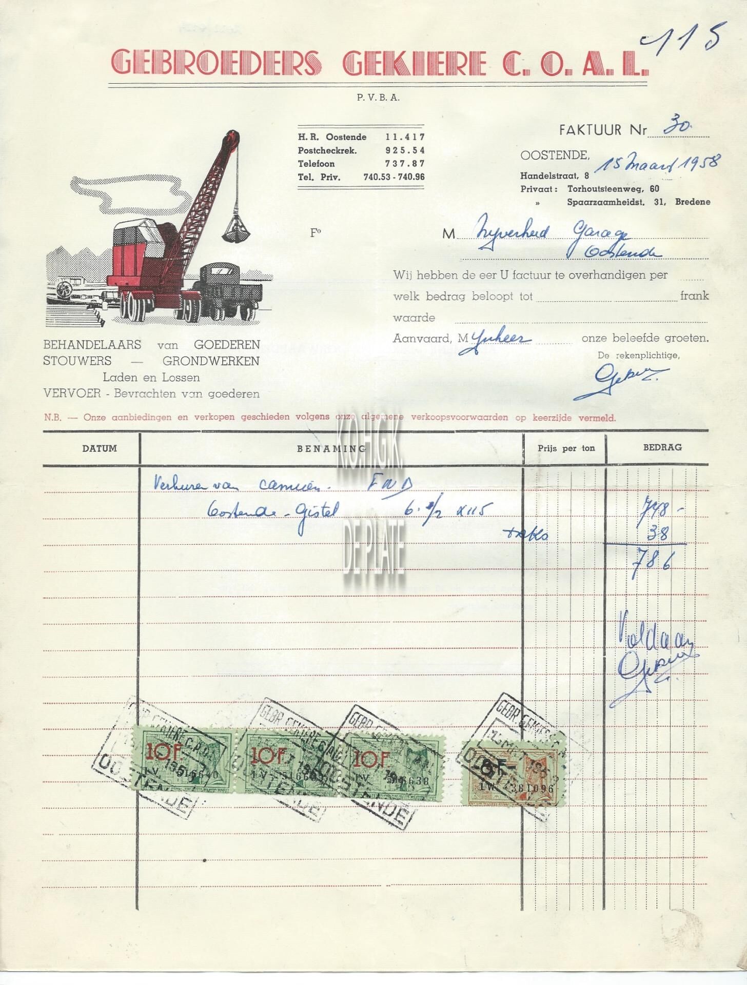 Trefwoorden HANDEL ; FACTUREN GEBROEDERS GEKIERE COAL (VERVOER) HANDELSSTRAAT Plaatskenmerk ARCHIEF 110 ARCHIEFDOOS HANDEL Inventarisnummers 2022/0124 15/ 03/ 1958 Print