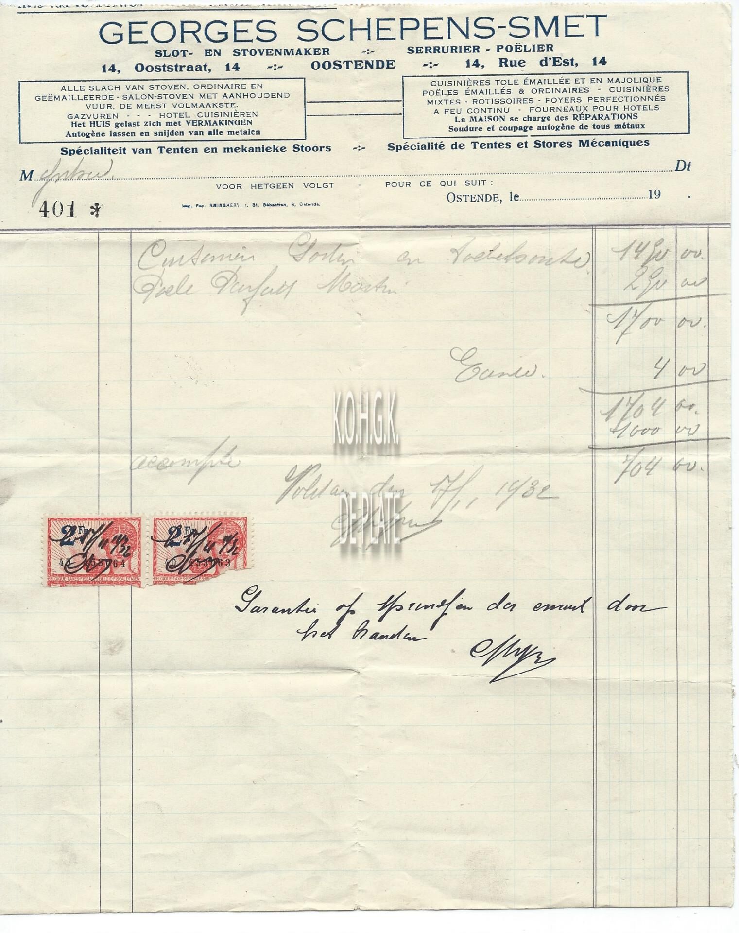 Trefwoorden HANDEL ; FACTUREN GEORGES SCHEPENS-SMET (SLOTEN- EN KACHELMAKER) NIJVERHEID ; METAALBEDRIJVEN OOSTSTRAAT Plaatskenmerk ARCHIEF 110 ARCHIEFDOOS HANDEL Inventarisnummers 2018/0014 17/ 11/ 1932 Vervaardiger Drukkerij Smissaert Print