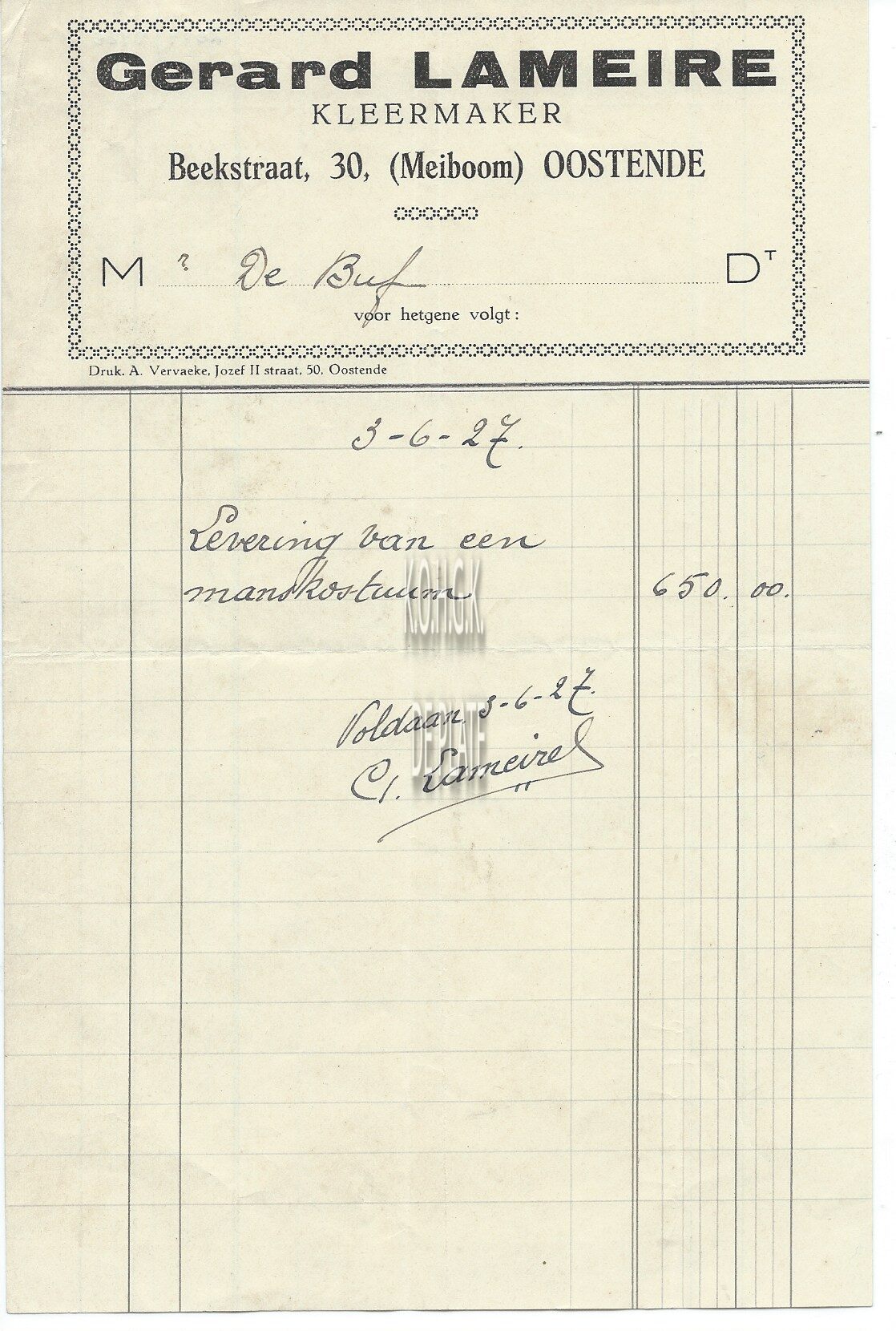 Trefwoorden HANDEL ; FACTUREN LAMEIRE GERARD (KLEERMAKER) HANDEL ; KLEDING BEEKSTRAAT Plaatskenmerk ARCHIEF 110 ARCHIEFDOOS HANDEL Inventarisnummers 2014/4460 03/ 06/ 1927 Herkomst HOSTYN NORBERT Vervaardiger Vervaeke (Oostende) Print
