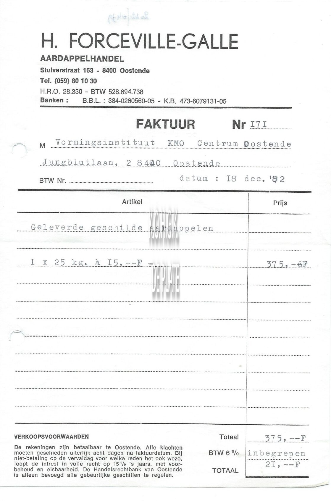 Trefwoorden HANDEL ; FACTUREN H. FORCEVILLE-GALLE (AARDAPPELHANDEL) HANDEL ; GROENTEN EN FRUIT STUIVERSTRAAT Plaatskenmerk ARCHIEF 110 ARCHIEFDOOS HANDEL Inventarisnummers 2022/0439 18/ 12/ 1982 Herkomst AANKOOP Print